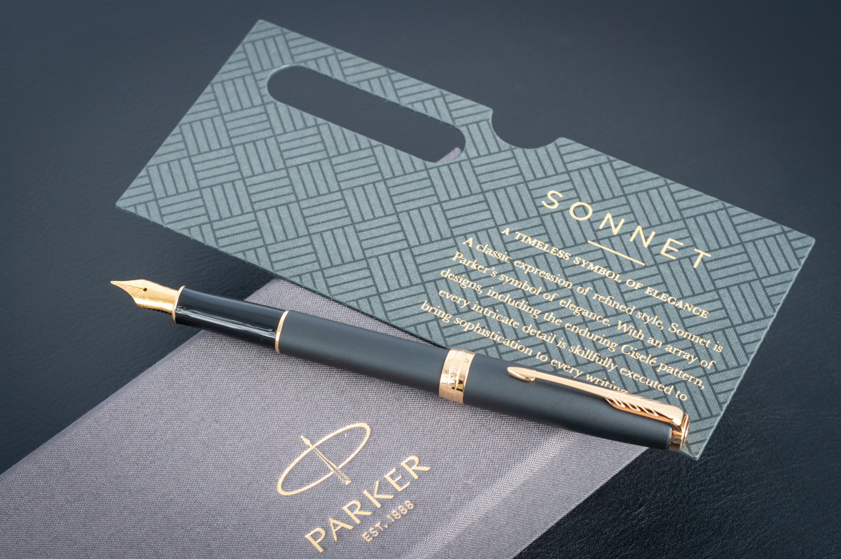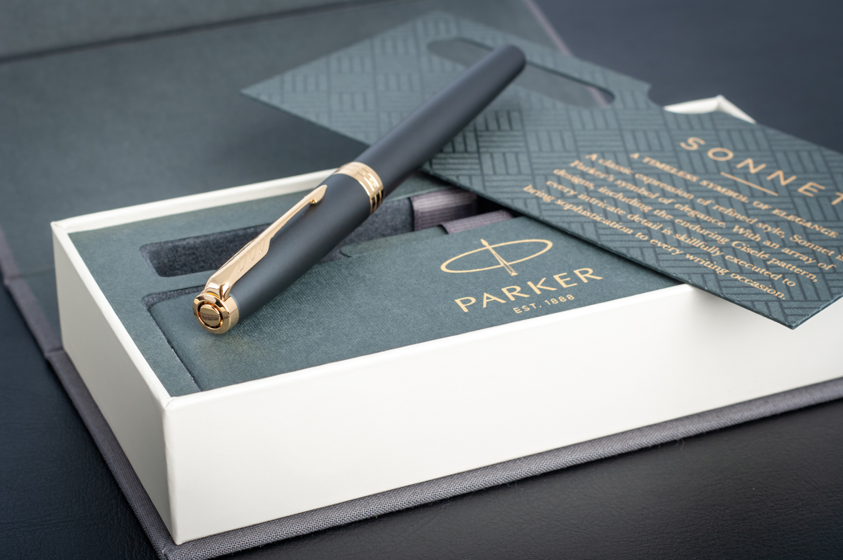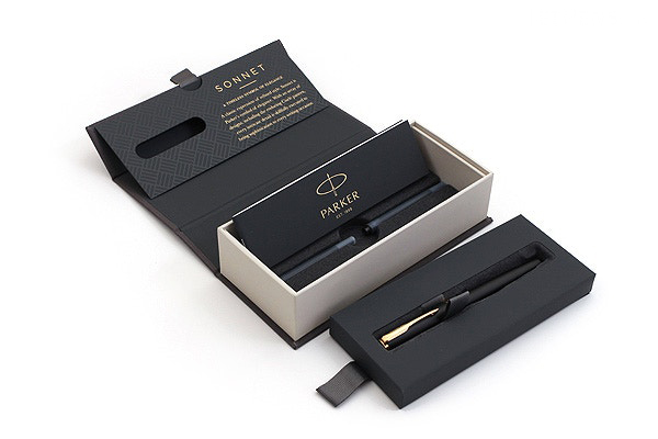 Перьевая ручка Parker Sonnet Matte Black GT от официального дилера Parker в Северске. Вы можете дополнительно заказать гравировку, которая подчеркнет Вашу оригинальность и придаст памятность статусному подарку. Все ручки Паркер поставляются в фирменном футляре.